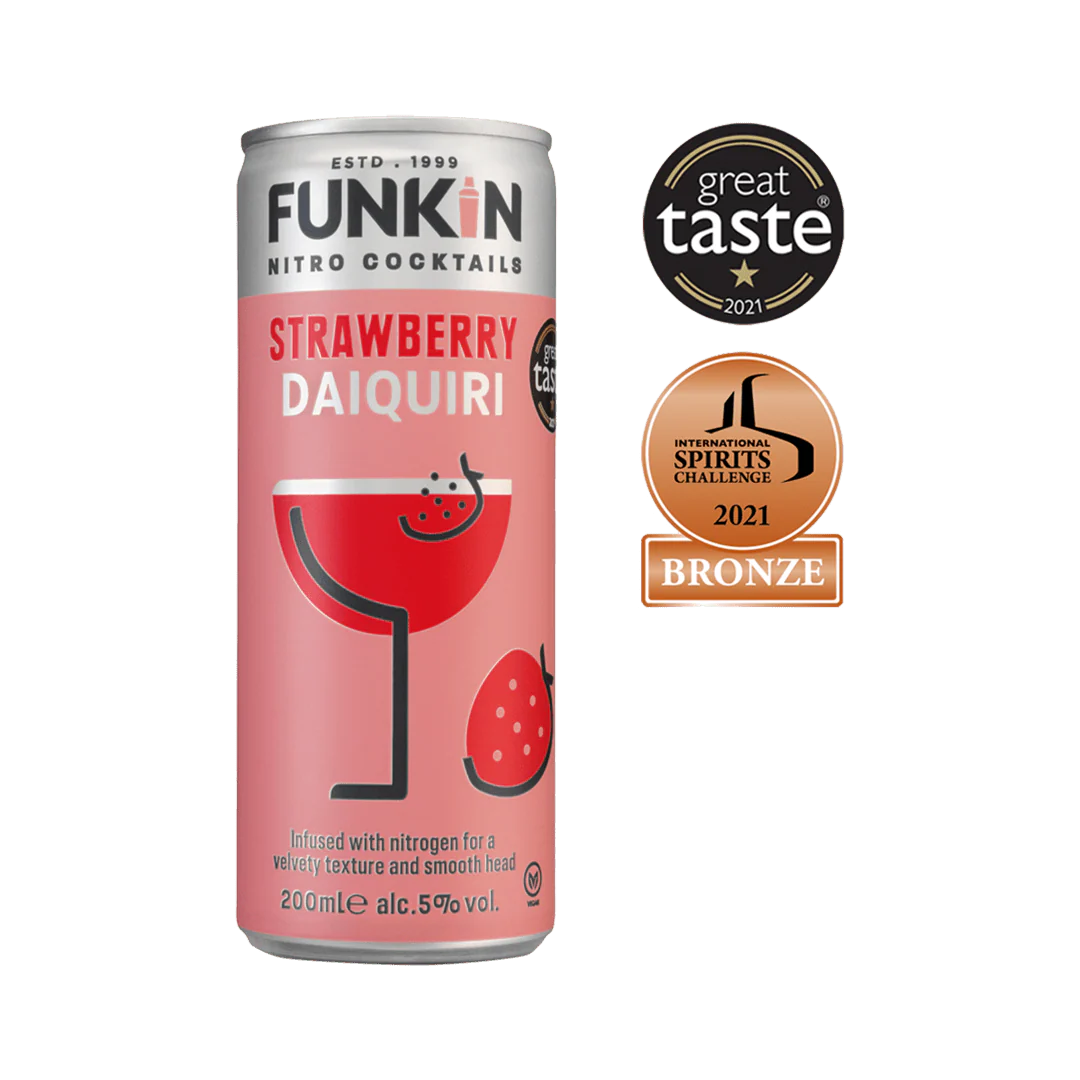 Ready to drink and easy to enjoy – Funkin Strawberry Daiquiri Nitro Cans give you the same great taste of a bar-quality cocktail, with none of the effort. It only takes a second to satisfy your Daiquiri desires. Just crack open a premade cocktail can and let the flavour flow. Funkin’s ready-made Strawberry Daiquiri nitro cans are best served chilled.