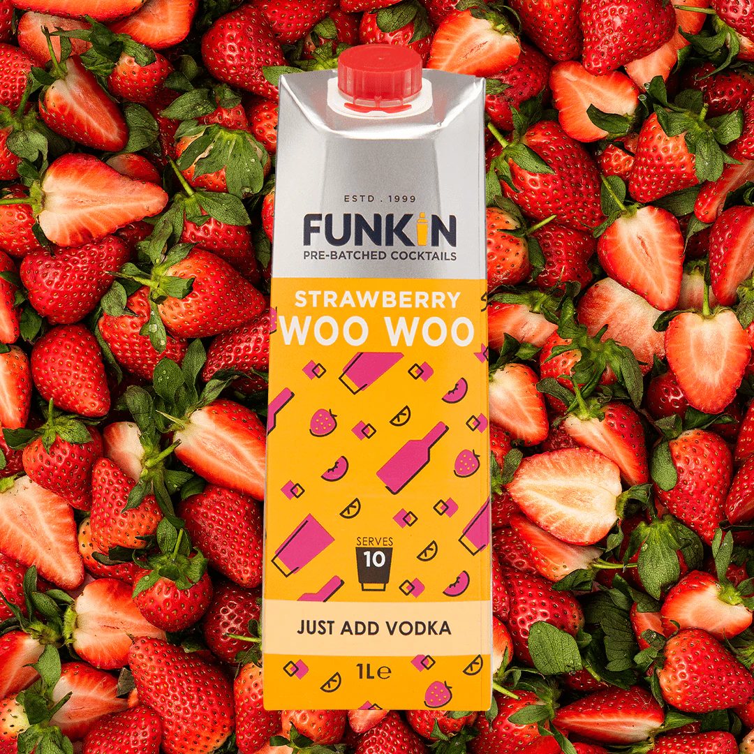 What do you get when you mix all-natural peaches, strawberries, lemons and cranberry juice? You get Funkin Strawberry Woo Woo Cocktail Mix – a premade bar-quality blend of the best ingredients, packed with real fruit juice. Just pour your ready made cocktail mixer straight from the carton, add your spirit of choice, and woo your guests with a world of flavour.